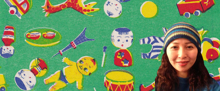 本館のショップでも売られている「土佐和紙のポチ袋」を制作され、今年の紙ものまつりの出展作家のひとりでもある夜長堂さんは、大阪を拠点に大正、昭和初期の千代紙や着物などのモダンな図柄を復刻した便箋や包装紙、ハンカチなどの様々なオリジナル商品の企画、販売、卸を行う他、郷土玩具やお祭り、キャバレーなどの日本の魅力を紹介する「夜長堂の乙女モダン蒐集帖」などの書籍も出版されています。